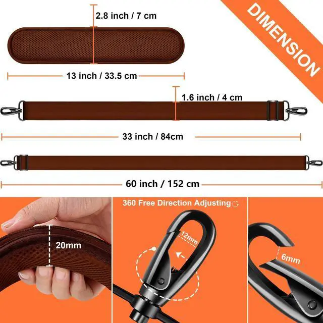 ^^ Sturdy Hardware: The buckles are made of high-quality alloy with excellent durability and strength, not easy to break or damage, and able to carry 50kg easily. Hooks are easier to press, with openings up to 0.35 '' larger than other conventional crossbody straps, with a 360-degree swiveling function, and easier to hang on D-rings or equivalent hardware.