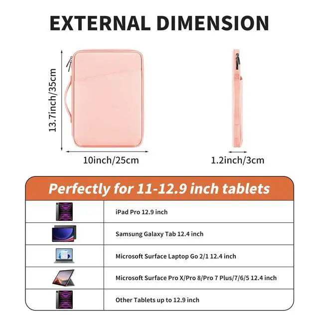 Dimension: 13.7 *10* 1.2 inch. Designed to snugly fit most 11- 12.9 inch tablets/iPads ^^