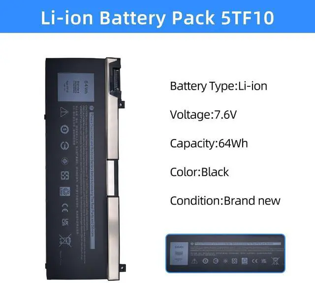 There maybe 2 battery models fit for your laptop: NYFJH 97Wh and 5TF10 64Wh, just refer to the above picture. Please open your laptop case to confirm your original battery shape and then choose the right one. This listing we are selling is: 5TF10, 65Wh.