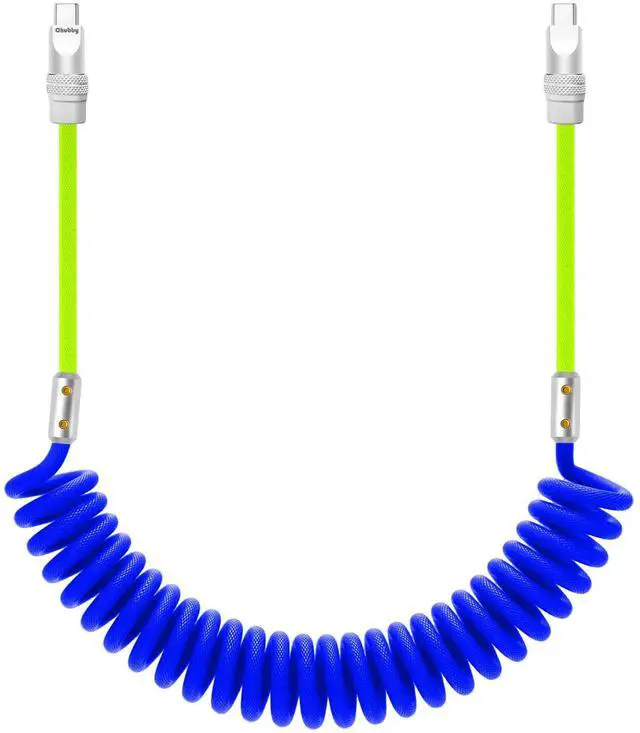 chubbycable Curly Chubby 240W Coiled USB C Cable Retractable Fast Charging Cable for Car Charger Cord Compatible with iPhone 17-15 Series, Dark Blue and Green, Type-C to Type-C, 2.29FT-3.6FT