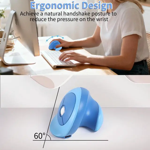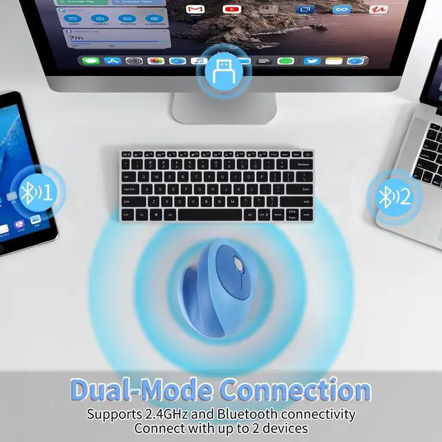 Ergonomic Design - This wireless bluetooth mouse for laptop is ergonomically designed with palm rest and thumb rest to provide better support and a comfortable grip that reduces wrist fatigue, allowing you to maneuver the cordless mouse more comfortably. This wireless vertical mouse is ideal for frequent computer users, office workers and more. ^^ Dual Mode Connection - This wireless computer mouse ergonomic uses advanced 2.4GH z wireless and dual Bluetooth technology to provide a fast and stable connection with an effective range of up to 33 feet.