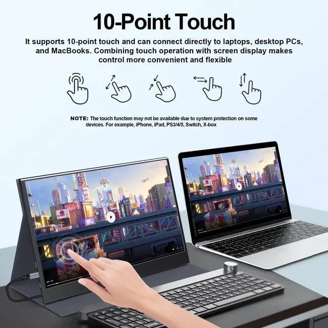 DHPL Portable Touch Monitor delivers a high-definition and convenient visual solution for multi-scenario use, thanks to its professional configuration and wide compatibility. Equipped with 10-point capacitive touch technology, it offers precise and smooth touch controlwhether youre annotating documents during laptop extended office work, swiping through content when mirroring your phone screen, or using shortcut controls after connecting a game console, it provides a touch experience close to that of original devices. In terms of compatibility, this monitor is fully compatible with mainstream computer devices such as PCs, laptops, and MacBooks, allowing you to easily achieve "dual-screen expansion" to improve work efficiency.