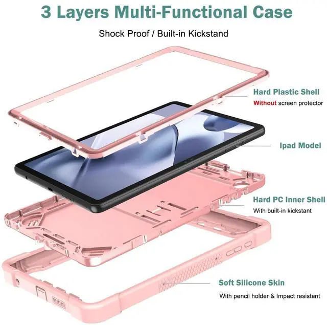 Tablet Case for T-Mobile Revvl Tab 2 5G, 3-in-1 Shockproof Stand Tablet Cover, Durable Rugged Design (No Screen Protector) for Revvl Tab 2 2025 10.1 Inch (Gold Pink)