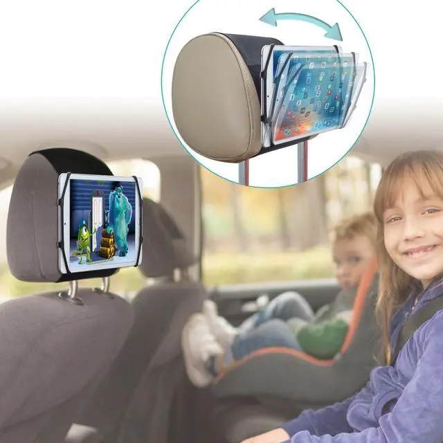 Car Headrest Mount for 7-10 inch Fire, Fire HD, Kids Edition Tablets, Angle Adjustable Holder with Silicon Holding Net.