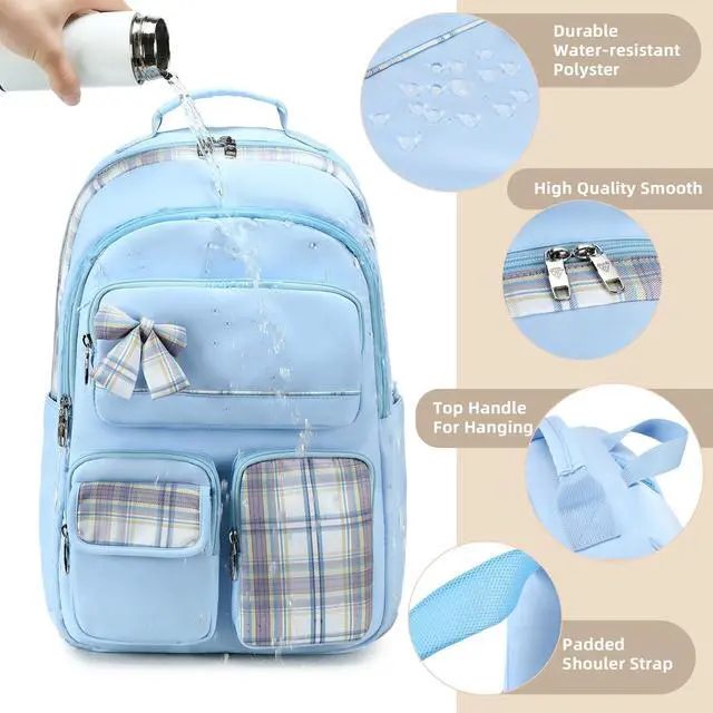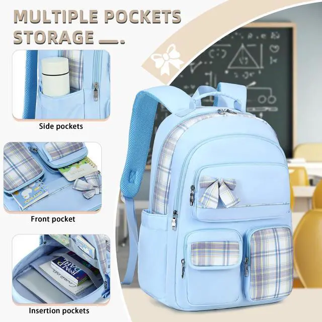 Weight: 1.65 lbs. The dedicated laptop backpacks with padded compartment adding a tablet slot fits for 14, 15, 16 inch laptop and 12.9 inch iPad. The cute girls backpack for elementary middle school comes along with a fluffy ball key pendant and personality badge to make the schoolbag more fashionable and unique