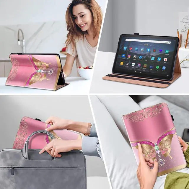 ^^ [Multiple Viewing Angles] The kindle fire hd 10 11th generation case with two anti-skid strips for allowing adjust your tablet to comfortable viewing or typing angles, humanized design. ^^ [Large Capacity] The 10 inch kindle fire tablet 2023 case built-in three card slots and photo post to store credit cards, business cards, and other essentials; pen holder design perfectly accommodates a touch screen pen for added convenience. ^^ [Unique Design] A variety of great looking patterns for fire hd 10 plus case to choose and make it even more special, also a good gift for family and friends.