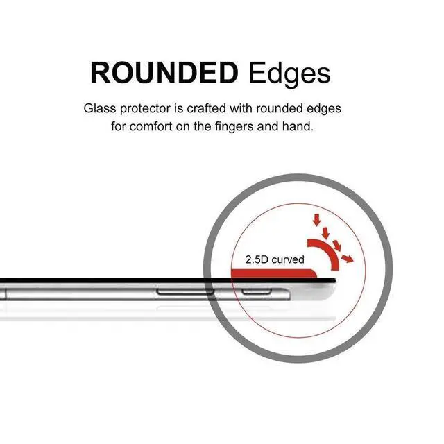 Made from the high quality tempered-glass for maximum scratch protection and no residue when removed ^^ 2.5D rounded edge glass for comfort on the fingers and hand ^^ 9H hardness, 99.99 % HD clarity, and maintains the original touch experience ^^ Hydrophobic and oleo-phobic coating to reduce sweat and reduce fingerprints ^^ Include 2 pcs tempered glass screen protectors