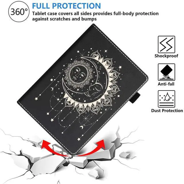 TBXOSTN Case for Kindle Fire HD 10 Tablet 10.1" (9th/7th Generation, 2019/2017 Release), Premium PU Leather Stand Cover with Smart Auto Wake, Celestial Theme Sun with Crescent Moon