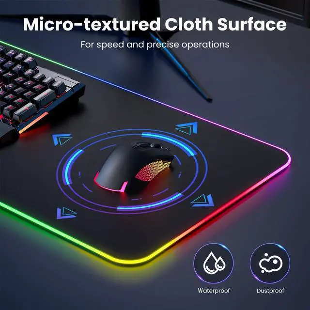 ^^ Micro-textured Cloth: Crafted from high-quality waterproof and dustproof microfiber fabric, this RGB gaming mouse pad ensures precise mouse control and longevity. A must-have for gamers who demand accuracy and durability.