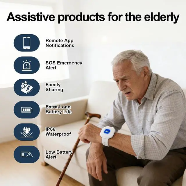 APP Remote Monitoring: This personal emergency alarm for the elderly connects to your mobile phone. In an emergency, simply press the button and your phone will immediately receive an alert notification. The elderly emergency button enables faster response to the patient's needs, making it an essential product for those with limited mobility. ^^ Caregiver Peace of