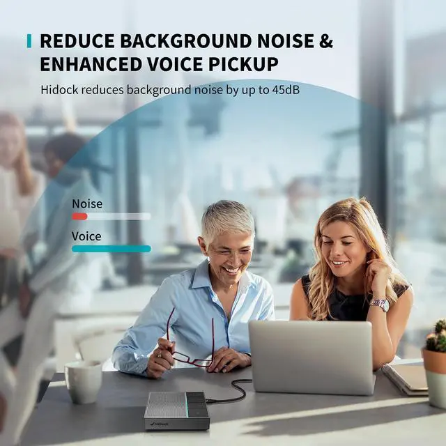 Reduction: HiDock speakerphone equipped with 4 Mics array to ensure that every word is captured, enabling communication in any environment. Up to 45dB noise cancellation function will auto detects and filters out unwanted sounds ^^ One Click to