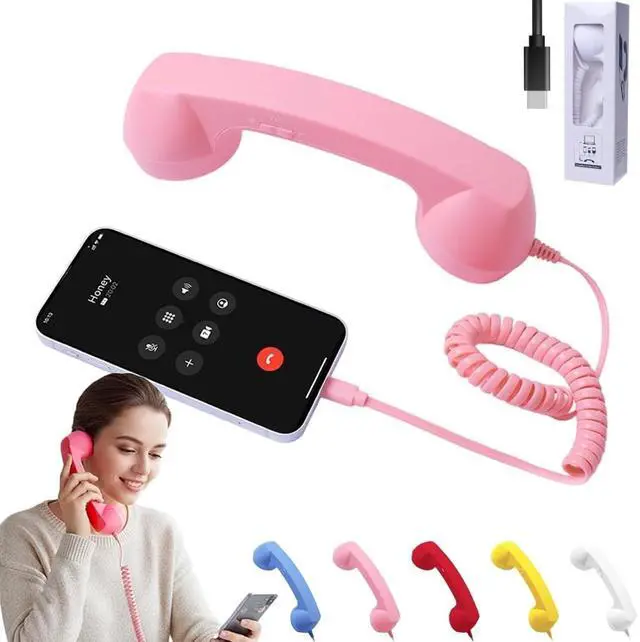 Retro Phone Handset Type C, 2026 Retro Cell Phone Receiver with Microphone & Speaker, Vintage Old School Telephone Handset with Crystal Clear Sound, 90s Classic Phone for Home & Office (Pink)