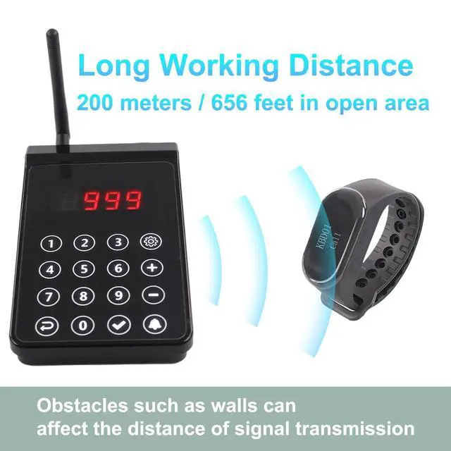 ^^ Reliable Range: With a transmitting distance of over 1300 feet, the keypad transmitter can reach employees throughout the entire restaurant space ^^