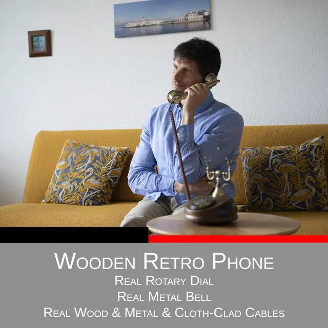 SUPERIOR CRAFTSMANSHIP & FUNCTION: Elevate your space with this decorative rotary telephone landline phone, a captivating vintage rotary phone. Featuring a functional rotary dial and classic metal bell, this old telephone vintage landline phone, crafted from real wood and metal, is a charming rotary dial phone compatible with modern connections.
