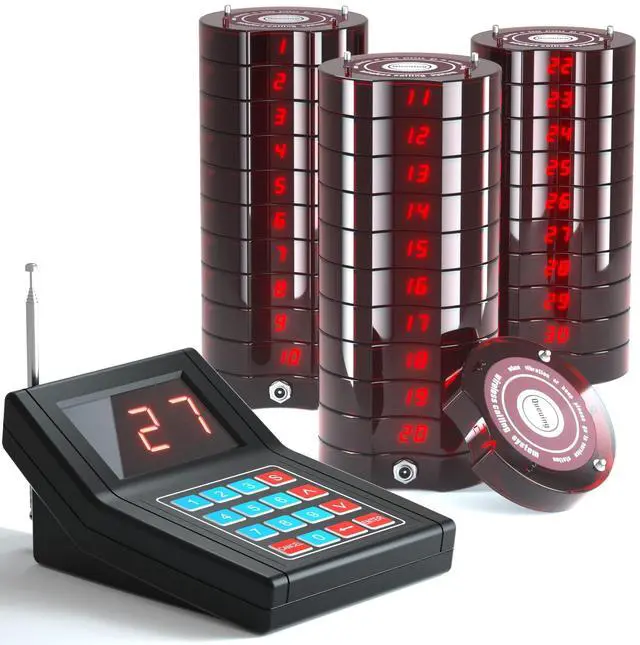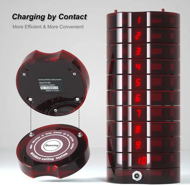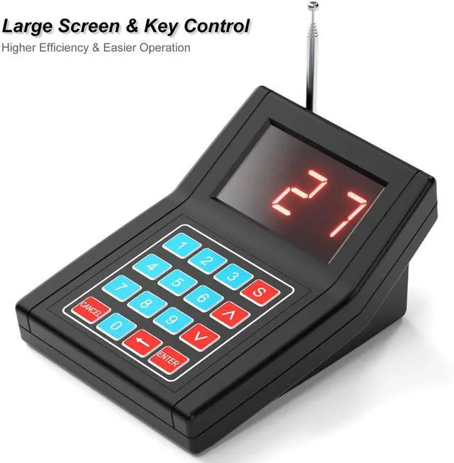 Description: This wireless queuing system set consists of one 999-channel keypad wireless calling button base and 10 pcs wireless coasters. The keypad call can send 999 different codes by combination from digits 0-9. The queuing system greatly improves the work efficiency and avoids the client waiting in a long queue. So it is widely used in fast food restaurant, food court, pizza shop, church and auto shop or other places where there are many guests waiting for their services.