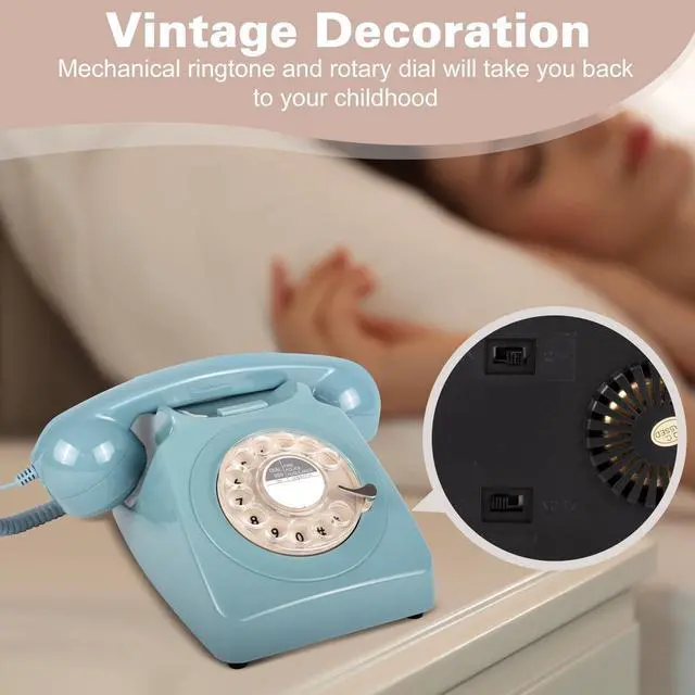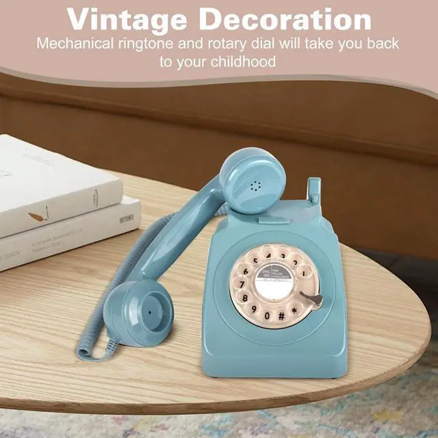 Home Creative Retro Phone, Corded Landline Home Phone, Analog Decorative 1960s' Old Fashion Desk Phone, Classic Rotary Dial Vintage Telephone with Bell Ringer for Home/Office/Hotel/School