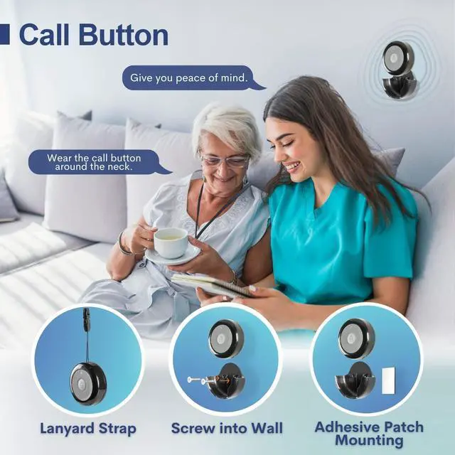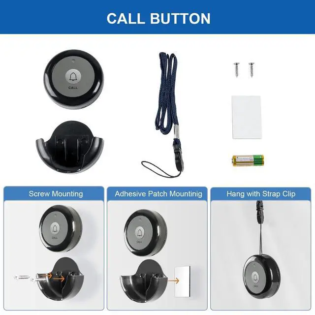 ^^ CONVERTIBLE FEATURE: Each call button comes with a mounting bracket that allows it to fix to a wall at bedside/in bathroom or affix to most smooth and clean surfaces with adhesive tapes/screws provided. Attach with the lanyard provided to wear around the neck as a pendant. ^^