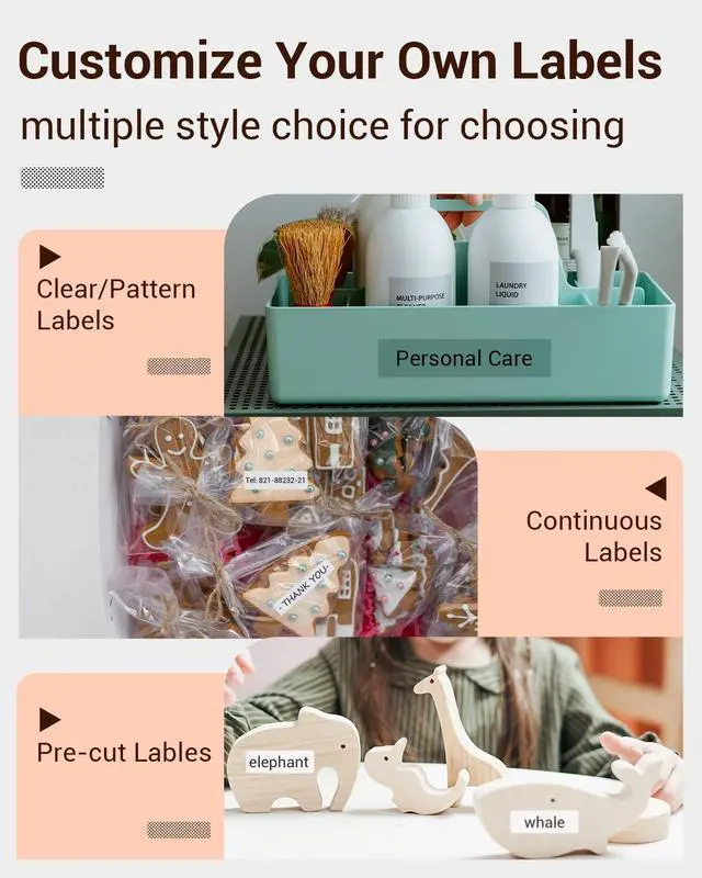 Customize your own label tapes: We have multiple style of label tape for choosing, such as white, color, transparent, circle, price labels.