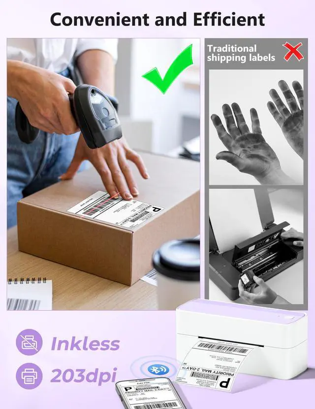 Note: The printer supports black-and-white printing only. For color labels, purchase compatible thermal color label paper separately. ^^ [Money and Time Saver] -Phomemo label printer utilizes advanced thermal direct technology for printing, eliminating the need for expensive toner or ink. With a printing speed of 150 mm/s, the printer can produce up to 72 sheets of 4x6 labels per minute. Additionally, the 203 DPI resolution ensures that the printing is clear and precise. With this printer, you can save precious time and money, making it an ideal choice for your labeling needs ^^ [Professional Team] - Phomemo support team provides technical support, including live chat, phone calls, emails even remote desktop operation. If you have any questions or concerns about our Bluetooth shipping label printer, please don't hesitate to let me konw.