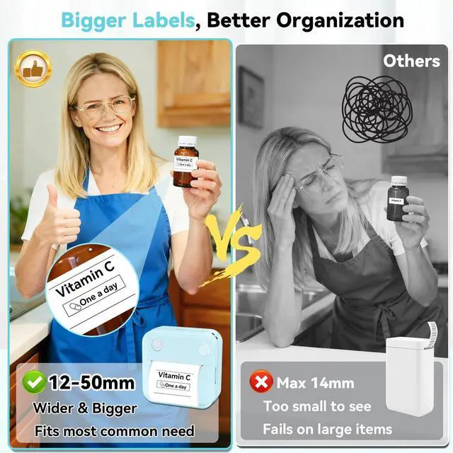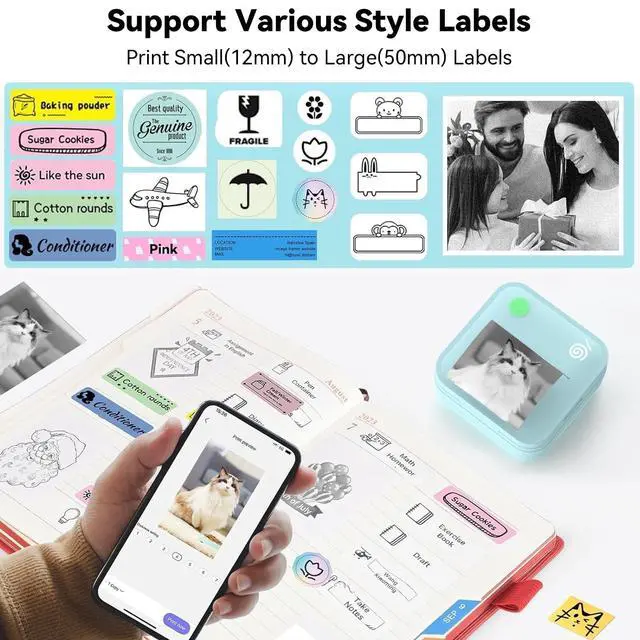Printing Performance: Equipped with a high-speed chip and 300DPI thermal print head, this label printer delivers professional-quality results every time. Supports up to 2-inch label tape of any shape ideal for home, office, school, or small business labeling. Enjoy crisp text and clear graphics with our thermal label maker technology. ^^ Perfect for Classroom, Home