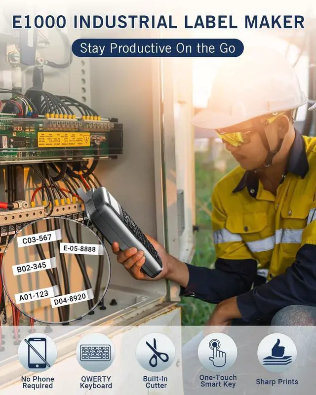 Keyboard Control: Grab and Go! Perfectly portable label maker E1000, lightweight and easy to carry anywhere, QWERTY Keyboard design make typing for organization become fast. You do not need to rely on any APP to print label ^^ Wire Label Maker with 2