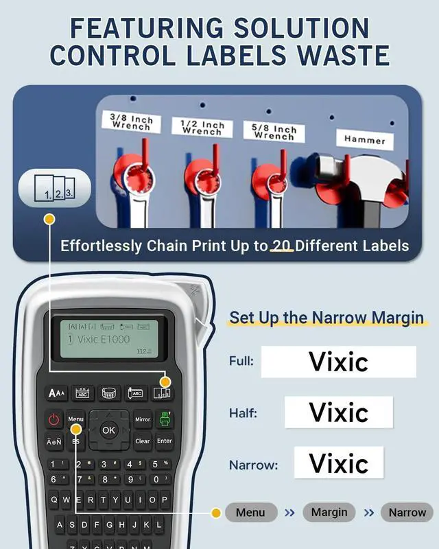 Included Durable Label Tape: Vixic E1000 industrial label maker comes with laminated white tape that can withstand temperature, fade, water and chemical. Won't leave sticky paper behind when peeled off surfaces. Won't smudge or smear