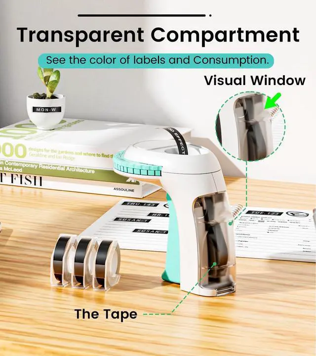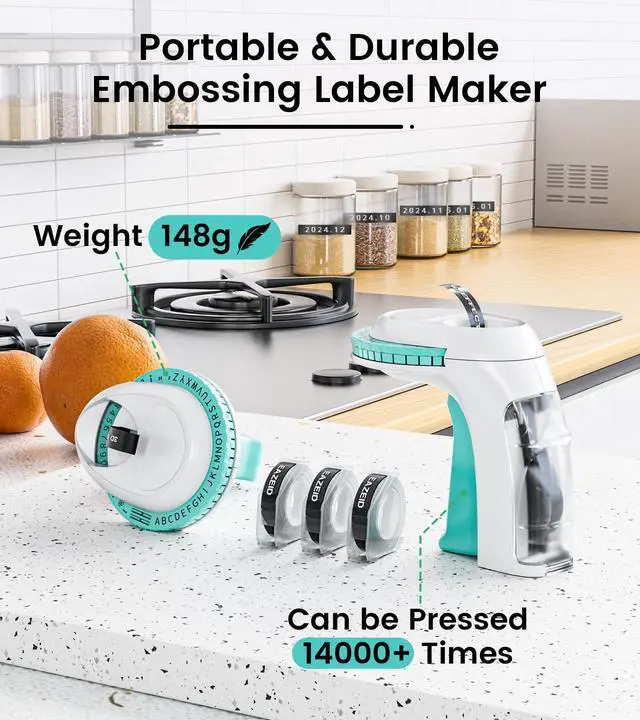 Vintage Embossing Label Maker : The EazeID embossed label maker with tape feat ures a charming retro design that people adore. Its ergonomic hand-grip design ensures effortless squeezing, saving you time and effort. Remember, the more pressure you apply, the clearer the print will be