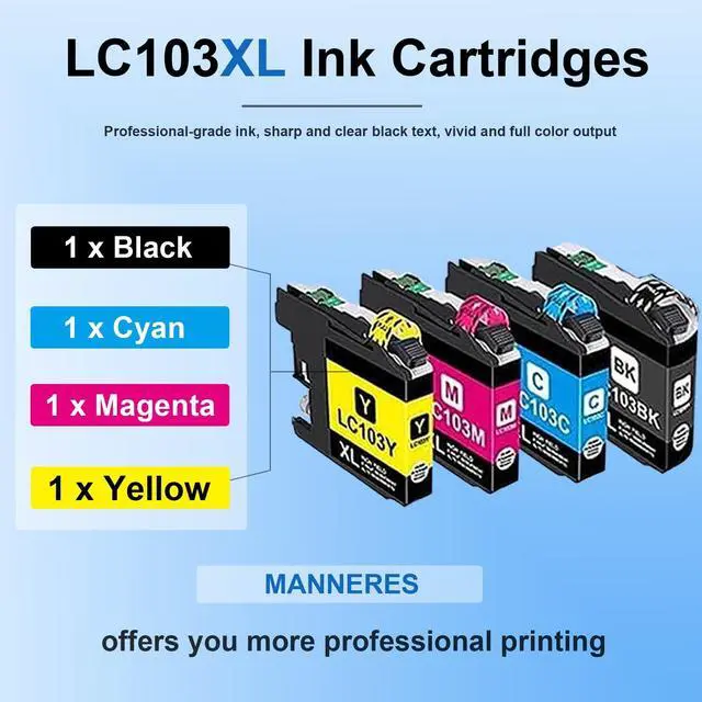 This value pack includes: one each of High-Yield Black, Cyan, Magenta and Yellow LC103XL ink cartridges, ensuring you're ready for any printing task ^^