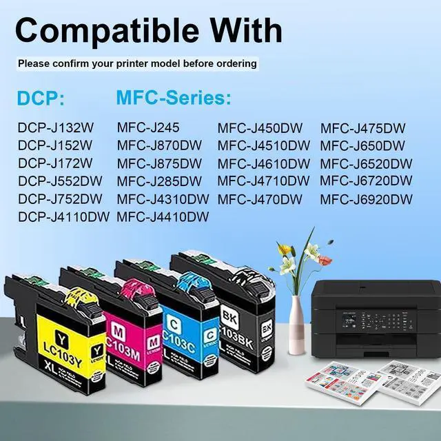 Seamless Compatibility & Easy Installation: As a high quality LC103 xl ink cartridges. Equipped with an intelligent chip, it can precisely print and detect. Working with MFC-J870DW MFC-J875DW MFC-J245 MFC-J285DW MFC-J4310DW MFC-J4410DW MFC-J450DW MFC-J4510DW MFC-J4610DW MFC-J470DW MFC-J4710DW MFC-J475DW MFC-J650DW MFC-J6520DW MFC-J6720DW MFC-J6920DW DCP-J132W DCP-J152W DCP-J172W DCP-J4110DW DCP-J552DW DCP-J752DW Printer ^^ High Page Count -
