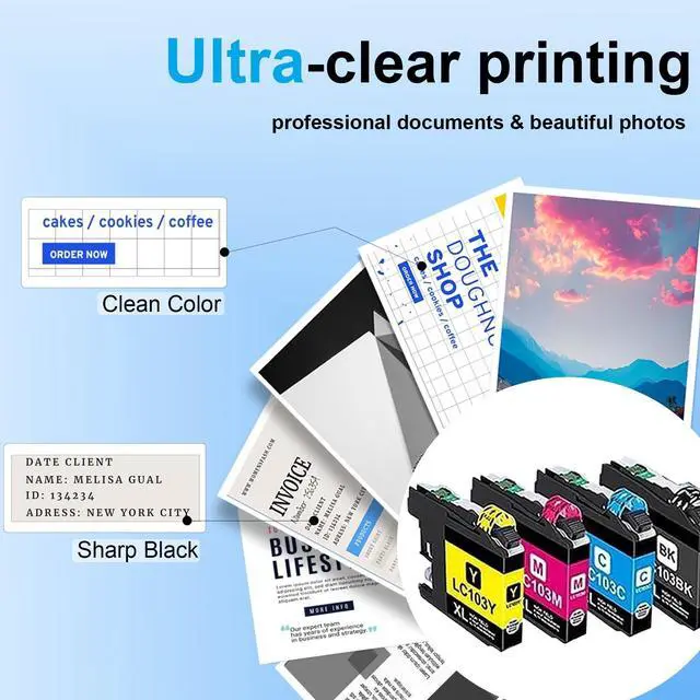 Low Cost: Each LC103XL ink cartridge can output at least 600 pages, allowing you to achieve print quality comparable to the original at a low cost. These 4 packages offer a total of 2, 400 pages, making them ideal for use in homes, offices and schools (Letter/A4, 5% coverage) ^^ Anti-Clogging Technology -