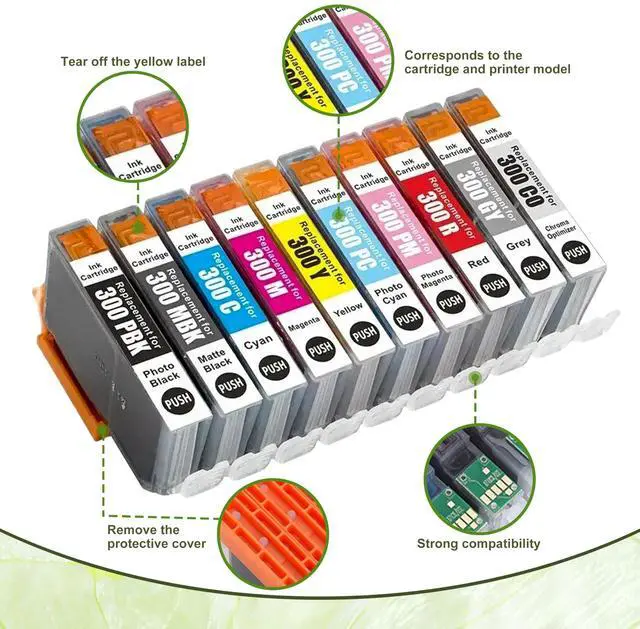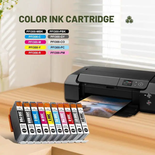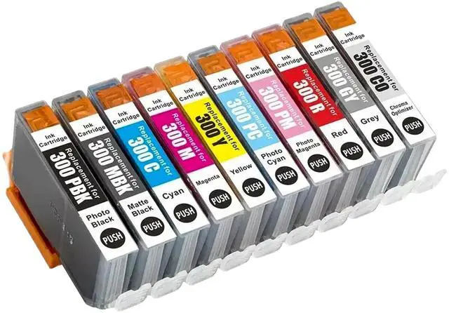 Package Contents: 10 Pack PFI-300 Ink Cartridges 15ml Pigment Ink (Photo Black / Matte Black / Cyan / Magenta / Yellow / Photo Cyan / Photo Magenta / Red / Gray / Chroma Opti) ^^ PFI-300 Ink