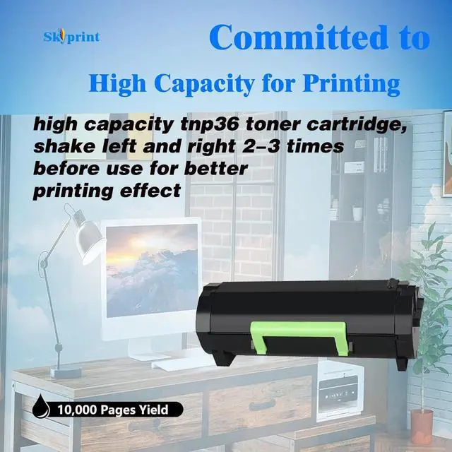 SkyPrint TNP36 toner cartridges come with intelligent chips that automatically recognize and provide printing,Shake the toner cartridge horizontally 2-3 times before use to evenly distribute the toner,providing you with better clear and natural printing effects