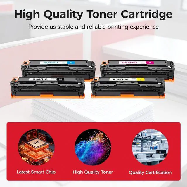 ^^ Package Contains: 4 Packs toner cartridges (131A CF210A Black / 131A CF211A Cyan / 131A CF212A Yellow / 131A CF213A Magenta). ^^ Each our toner cartridge undergoes a strict quality testing procedure to ensure quality and compatibility with your printer.