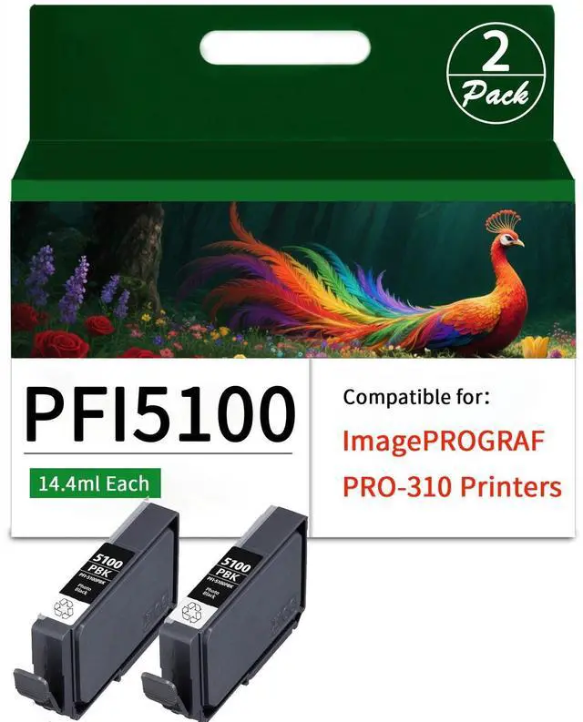 Compatible Printers: Image PROGRAF PRO-310 Printers ^^ Page Yield 14.4 ml per PFI-5100 Photo Black ink cartridge ^^ Upgraded Chips Equipped with the latest upgraded chips to ensure that each cartridge is perfectly compatible with your printer ^^ Printing QualityThe LPRINTCI PFI-5100 ink cartridge ensures clear and vivid printing results, capable of producing professional-level image effects comparable to those from the original ink cartridges.