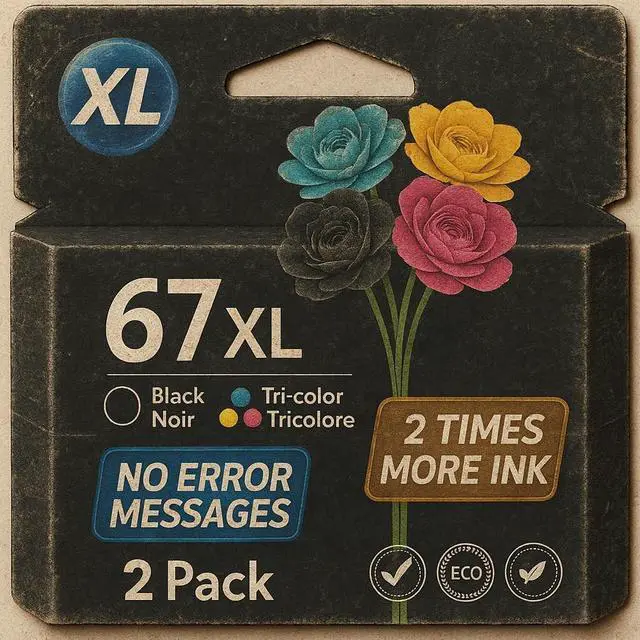 Ink Cartridges Replacement for HP 67 XL Combo Pack. Works with HP Envy 6000 6055 6055e 6400e 6455e 6458e, DeskJet 2742e 2752e 2755e, Envy Pro 6455 6458 Printers, Black & Tri-Color, High Yield, 2-Pack