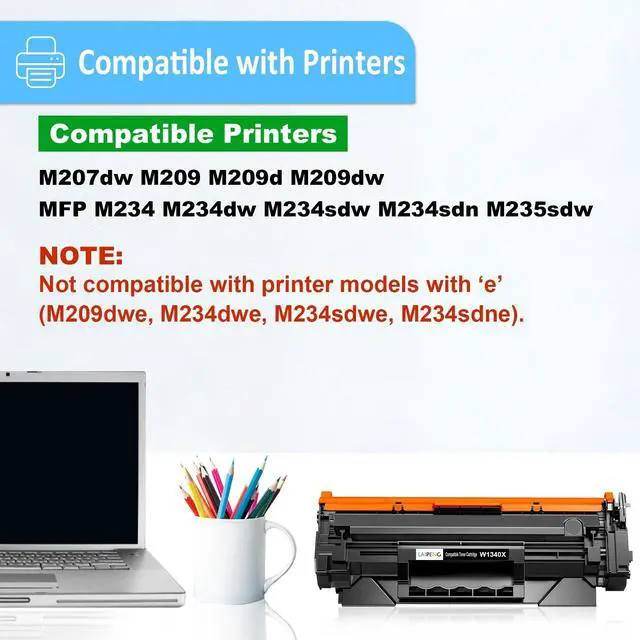 What You Will Get - - 2 pack compatible toner cartridge 134X W1340X black [With Latest Chip]. ^^ Compatible Printer Model - - Compatible for use in M209 M209dw, MFP M234 M234dw M234sdw M234sdn Printer.