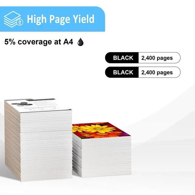 • High Print Yields - - High capacity, up to 2,400 pages per black toner cartridges, at 5% coverage, A4 paper, letter (ISO/IEC standard).