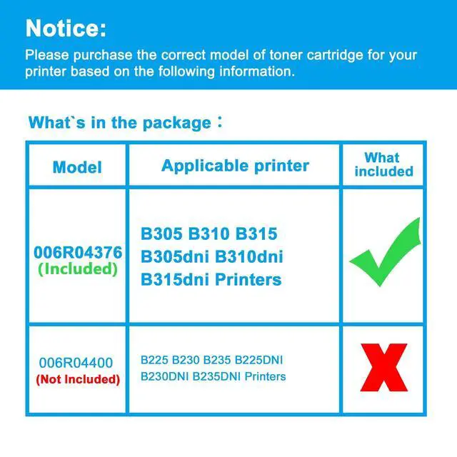 • Compatible Printers: Replacement for Xerox B305 B310 B315 B305dni B310dni B315dni Printers