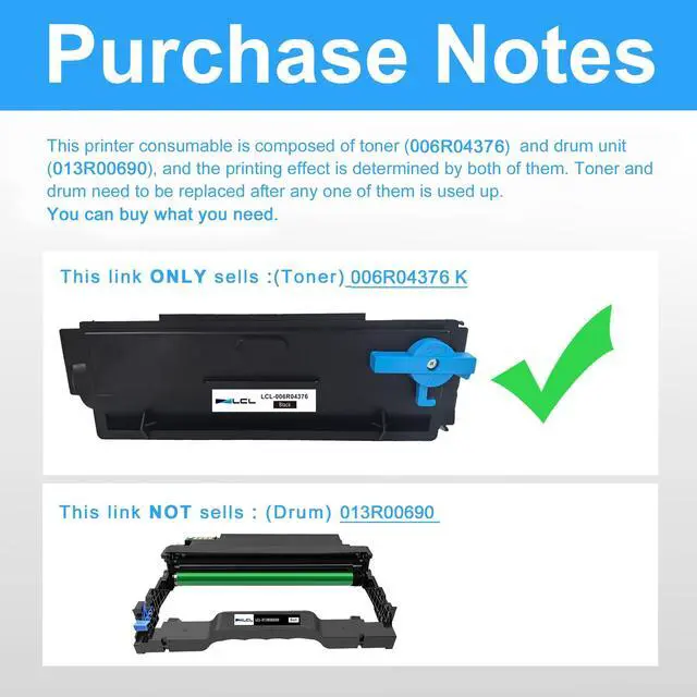 Reliable Quality: LCL 006R04376 cartridge uses high quality toner, toner particle size distribution, good mobility, high transfer rate, resulting in a clear image and high gloss print effect; Printing efficiency is high, waste powder rate is low, so as to ensure sufficient page yield.