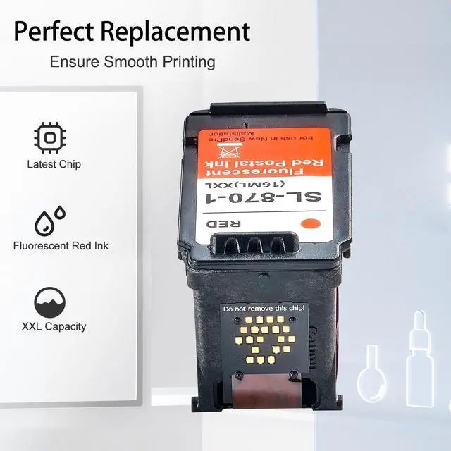 ^^ Include Package: 1 Pack Red Ink Cartridges ^^ Easy to install, the HEG SL-870-1XXL Red Ink Cartridges promise a hassle-free replacement experience, letting you quickly get back to your important mailing tasks. ^^ With a commitment to quality and efficiency, the SL-870-1 red ink cartridge offers longevity, reducing the frequency of cartridge changes and saving you valuable time and resources.