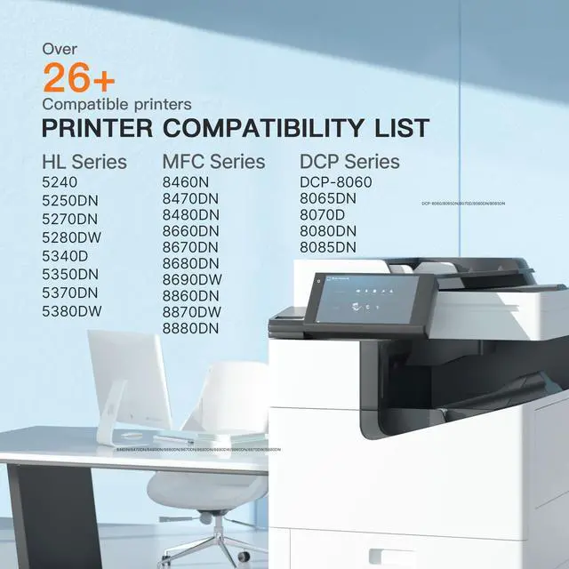 Printer Compatibility: Compatible with Brother DCP-8060, DCP-8065DN, DCP-8080DN, DCP-8085DN, HL-5240, HL-5250DN, HL-5270DN, HL-5280DW, HL-5340D, HL-5350DN, HL-5370DW, HL-5380DN, MFC-8370, MFC-8460N, MFC-8470DN, MFC-8480DN, MFC-8660DN, MFC-8670DN, MFC-8680DN, MFC-8690DW, MFC-8860DN, MFC-8870DW, MFC-8880DNP, MFC-8890DW Printer ^^ Refined toner powder provides high-quality images and text