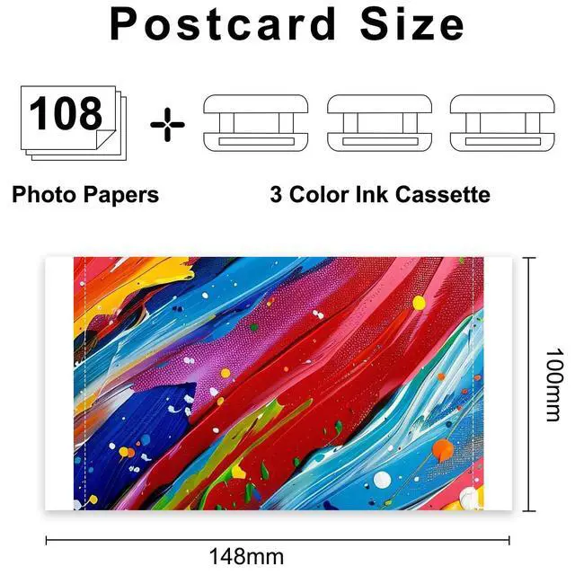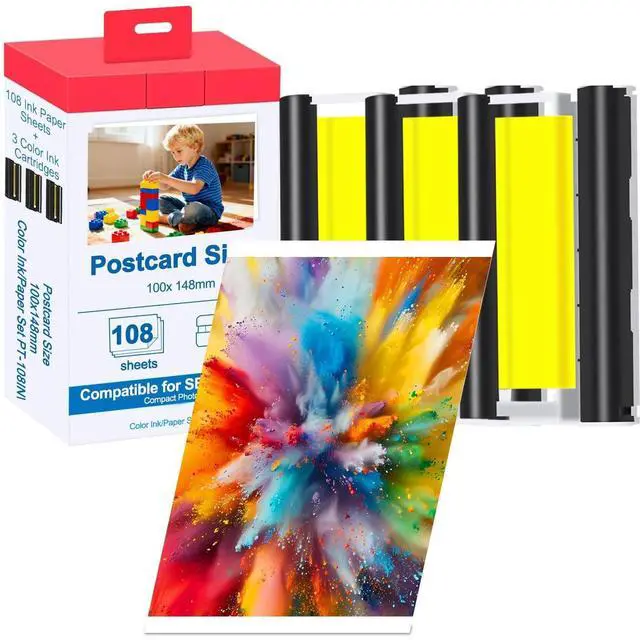 Package Contents: For Canon Selphy Ink Cartridge and Photo Paper Bundle, containing 3 Color Ink Cartridges & 108 Sheets 4x6 Photo Paper Glossy (100 x 148mm) ^^ Compatible with