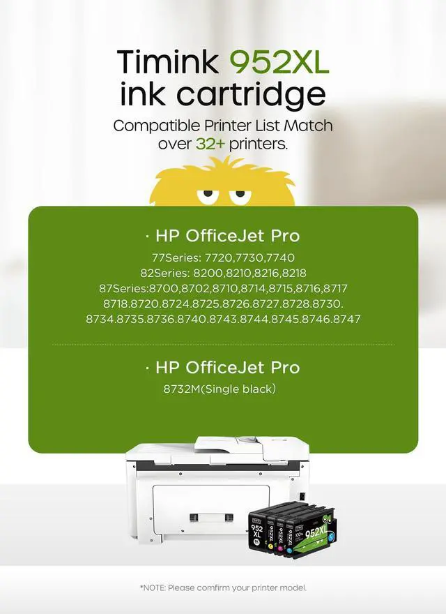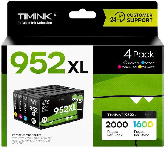 Maximize your printer's performance with this 952XL Compatible Ink Cartridge Combo Pack. This cost-effective replacement for the original 952 XL cartridges offers reliable and consistent printing for your Officejet Pro 7740, 8210, 8710, 8720, 8740, 8715, 7720, 8725, and 8730 printers. The pack includes four high-yield cartridges (Black, Cyan, Magenta, and Yellow) to ensure you have all the colors you need for vibrant and accurate prints. With this combo pack, you can enjoy seamless printing without worrying about running out of ink. Get crisp text documents and vivid graphics at an affordable price.