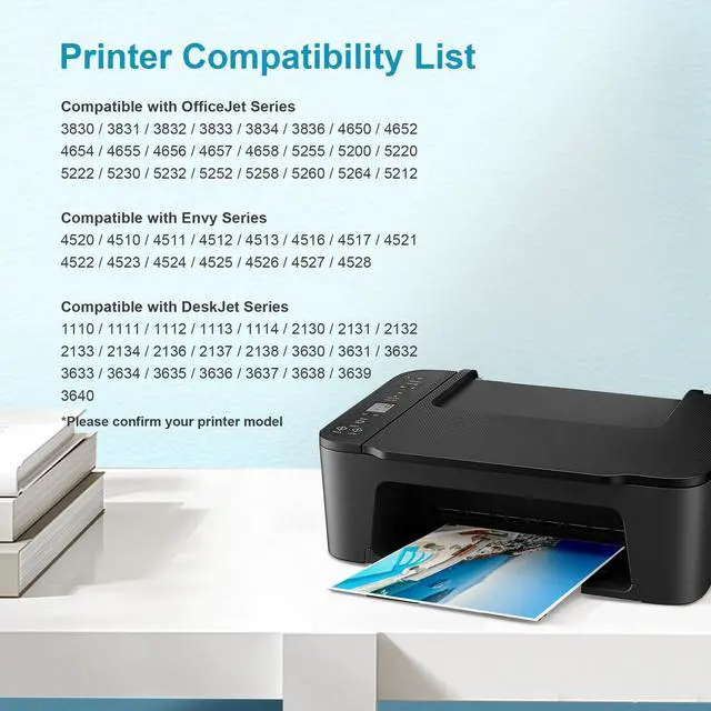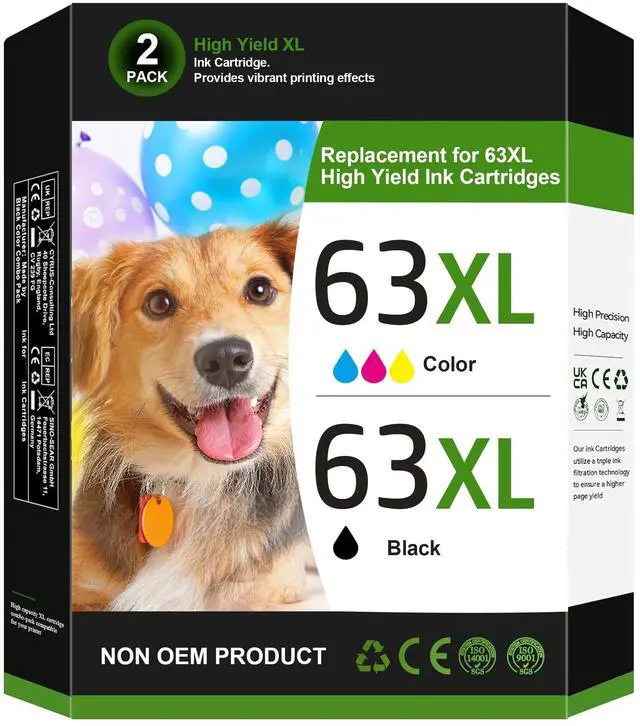 Package Includes: 1 x 63XL black ink cartridge, 1 x 63XL color ink cartridge, 1 x User Guide ^^ Compatible for HP OfficeJet 3830, 3831, 3832, 3833, 3834, 3836, 4650, 4652, 4654, 4655, 4656, 4657, 4658, 5255, 5200, 5220, 5222, 5230, 5232, 5252, 5258, 5260, 5264, 5212 ^^ Compatible for HP Envy 4520, 4510, 4511, 4512, 4513, 4516, 4517, 4521, 4522, 4523, 4524, 4525, 4526, 4527, 4528 ^^ Compatible for HP DeskJet 1110, 1111, 1112, 1113, 1114, 2130, 2131, 2132, 2133, 2134, 2136, 2137, 2138, 3630, 3631, 3632, 3633, 3634, 3635, 3636, 3637, 3638, 3639, 3640 ^^