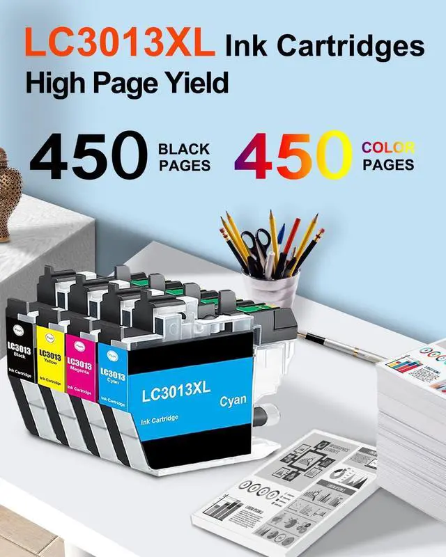 Low Cost: Each LC3013XL ink cartridges can output at least 450 pages, allowing you to achieve print quality comparable to the at a low cost. These 4 packages offer a total of 1, 800 pages, making them ideal for use in homes, offices and schools (Letter/A4, 5% coverage) ^^ Anti-Clogging Technology -