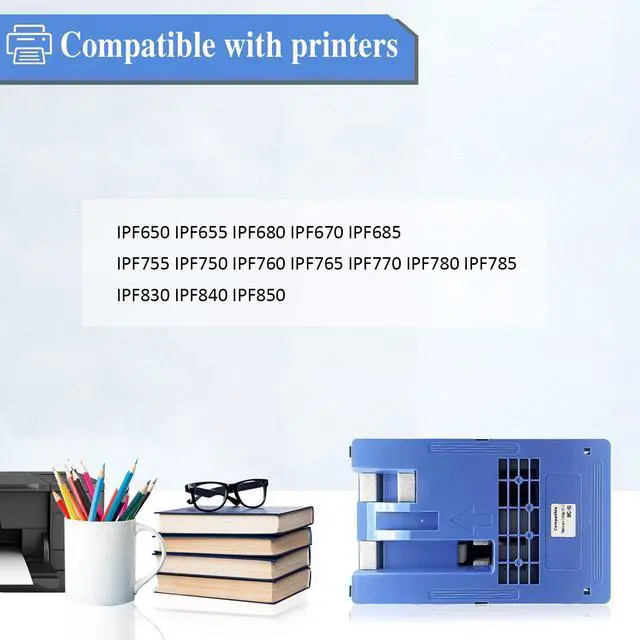 Compatible with Printers Compatible with Canon imageprograf IPF650 655 680 670 685 755 750 760 765 770 780 785 830 840 850 printers. ^^ Package Contents Total 1 Pack of Compatible MC-10 Maintenance Cartridge Replacement. (NOT ORIGINAL). ^^ High PerformanceSHUOLEO maintenance cartridge is equipped with advanced ink absorption technology, which effectively collects and contains excess ink during printer maintenance cycles. This innovative feature helps prevent ink spills, ensuring clean and efficient printer operation. Moreover, it effectively extends the printer's lifespan and reduces the frequency of ink cartridge replacements. ^^ Easy Installation Please replace the maintenance cartridge when the printer's software indicates that it is approximately 80% full.