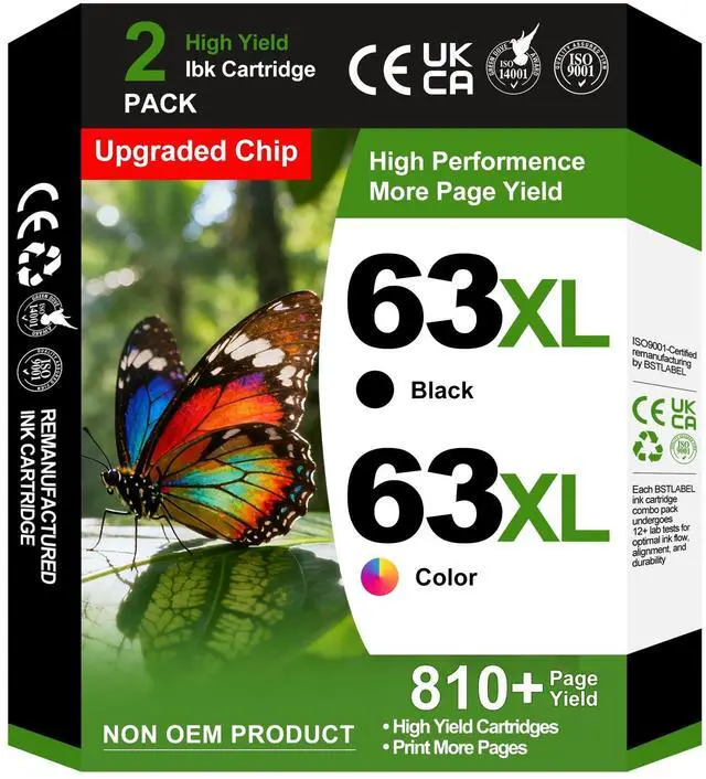 Highly Premium: BSTLABEL 63XL for hp 63 Ink cartridge combo pack are equipped with the latest upgrade intelligent chips. Remanufactured ink cartridge replacement for hp 63XL has been awarded ISO9001 certification, and we have independent laboratories periodically verify product quality to ensure a smooth user experience.