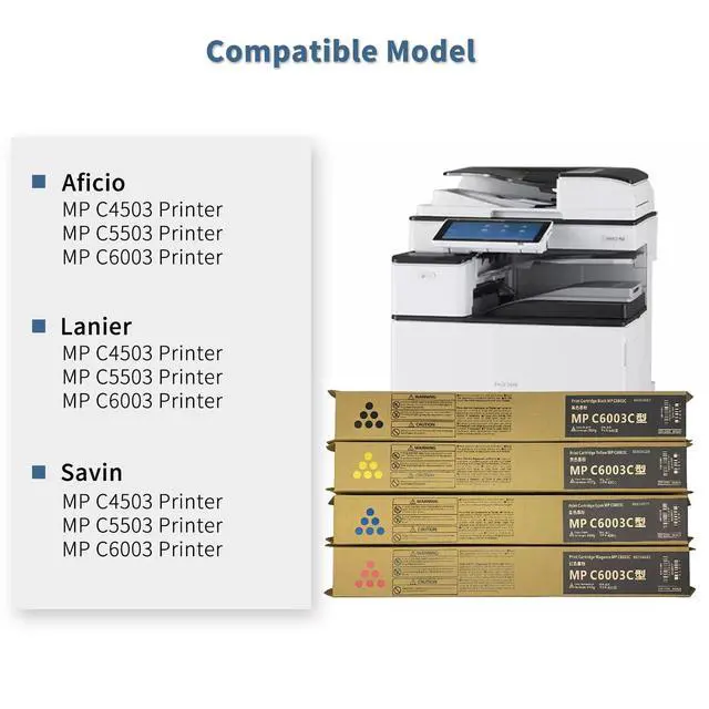 Compatible Printers: Compatible with Ricoh Aficio MP C4503, MP C5503, MP C6003, Lanier MP C4503, MP C5503, Savin MP C4503, Savin MP C5503, Savin MP C6003.