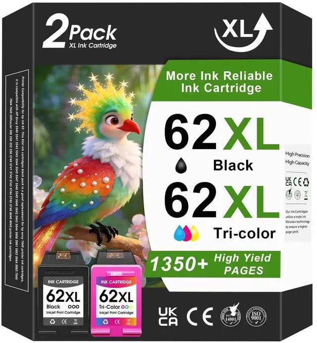 Replacement for hp 62 ink: The INKMATE 62XL black and color combo pack high-yield ink cartridge can replace the hp 62 62xl ink cartridges. This compatible hp ink cartridge features high-quality printing effects, with clearer printed text and more vivid picture colors ^^ Printer Compatibility for hp ink 62: This 62xl ink cartridges black and color combo pack is a good replacement for hp envy 7640 printer ink cartridges, compatible with HP Envy 5540 5541 5542 5543 5544 5545 5547 5548 5549 5640 5642 5643 5644 5660 5661 5663 5664 5665 7640 7644 7645 OfficeJet 200 250 252 258 5740 5741 5742 5743 5744 5745 5746 8040 8045 printer ink cartridges ^^