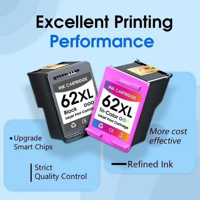 Eco-friendly and recyclable: Our recycled HP 62 XL ink cartridges (for HP black and color ink cartridges) are made from durable, non-toxic materials and providing reliable performance while supporting sustainability. Make your printing smarter and greener with INKMATE 62 cartridges